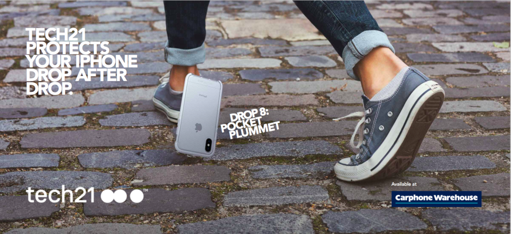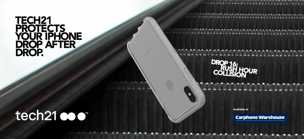 Tech21 phone cases protect drop after drop. We worked with social influencer’s and pranksters ‘Woody & Kleiny’ to develop phone drop videos for their social channels, inventing the ‘Phone Catch Challenge’, which generated over 2.2m views and 2.4K comments. We also created a series of tube cards and Digital OOH films using 1.5D to capture the drama of dropping your phone - again and again. I was creative/CD on this project at Tug Social.